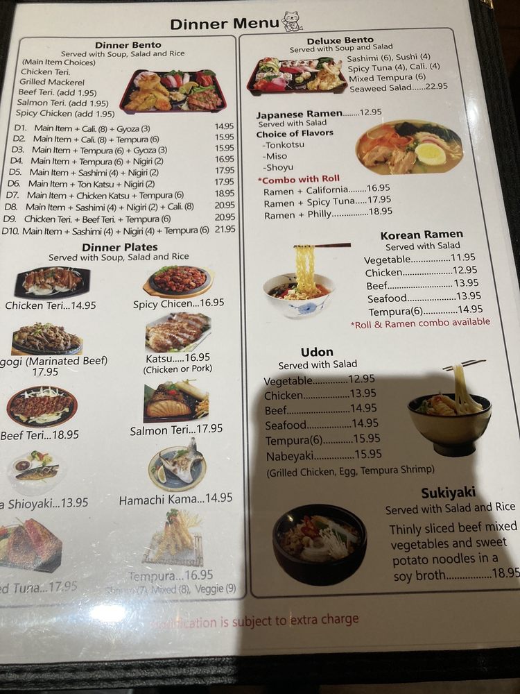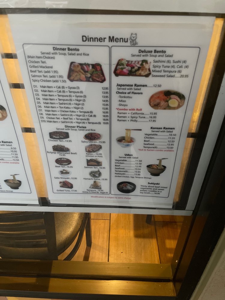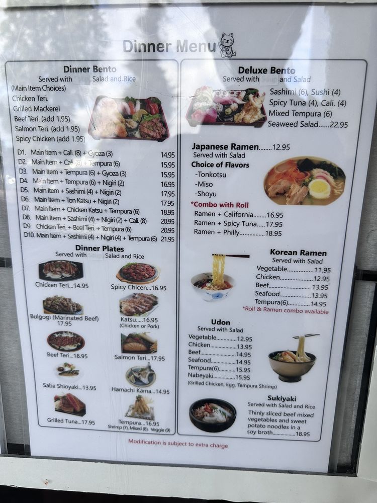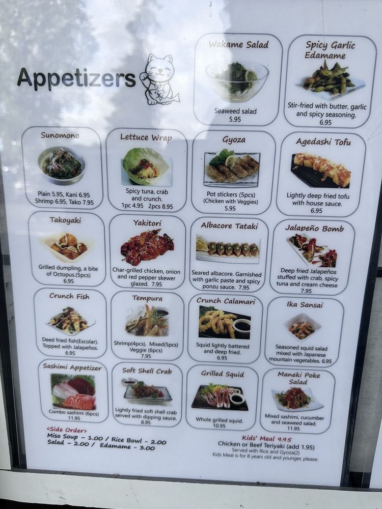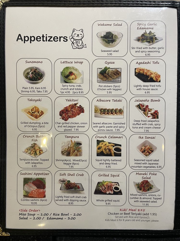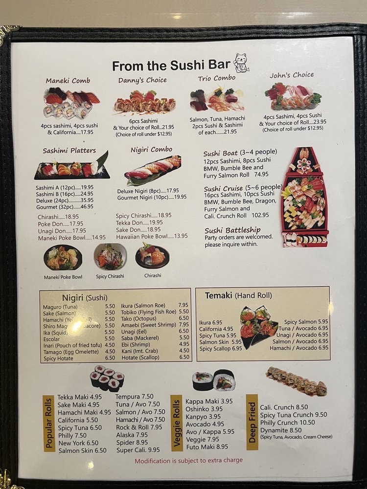 "Introducing the menu at Maneki Sushi, a Japanese sushi bar located in Union City, CA. This casual dining spot offers a variety of sushi options, including vegan and vegetarian choices. Customers rave about dishes like the 'Amigo', 'Furry Salmon', and 'Finding Nemo' sushi rolls. Standout items include the crispy Tempura shrimp with fresh shrimp inside and the generous Chicken Teriyaki Bento Box. The Salmon Skin Hand Roll is a must-try according to loyal customers. With options for delivery, takeout, and catering, Maneki Sushi provides a seamless dining experience. The bento boxes are described as 'generous' and offer a great value for the price. Overall, Maneki Sushi impresses with its flavorful dishes, good service, and casual atmosphere."